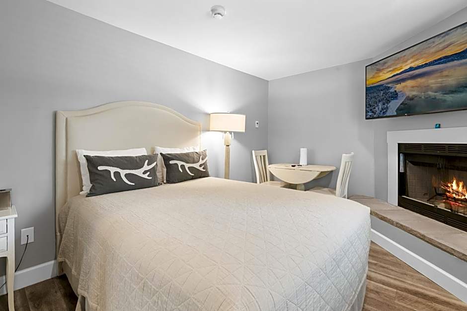 This room offers a fireplace, microwave, fridge and cable TV.